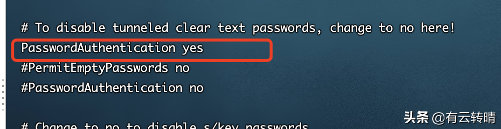 PermitRootLogin yes #是否允许root用户使用ssh远程登录PasswordAuthentication yes #允许使用密码登录