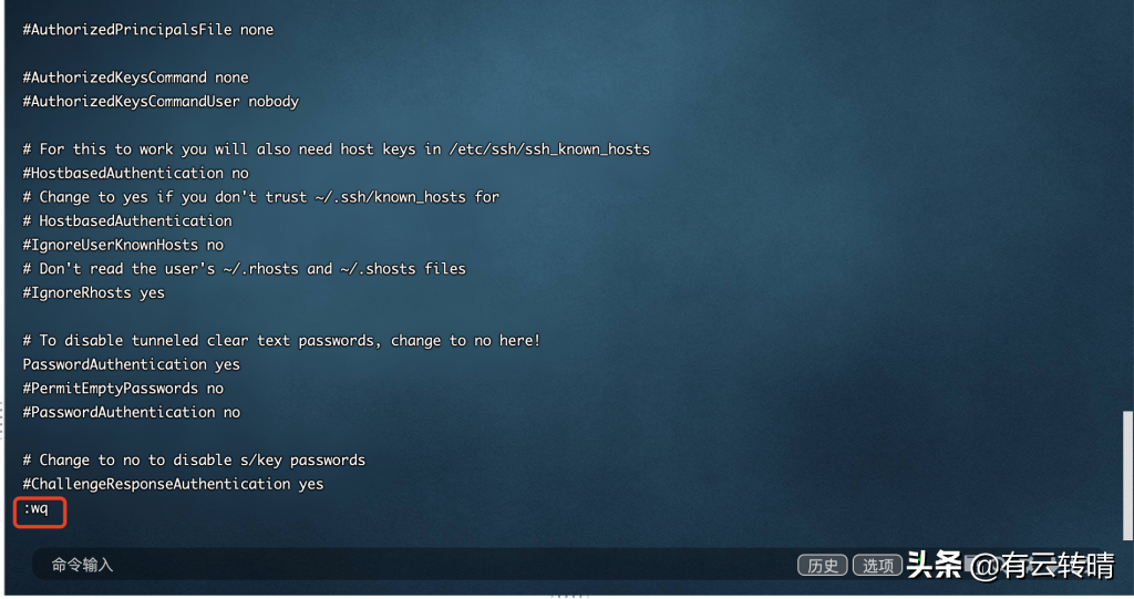 5.esc退出编辑模式并输入”:wq”回车保存即可