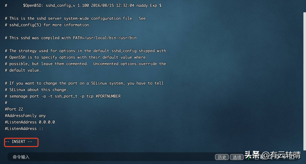 3.输入字母”i“回车进入编辑模式(看到INSERT代表成功)
